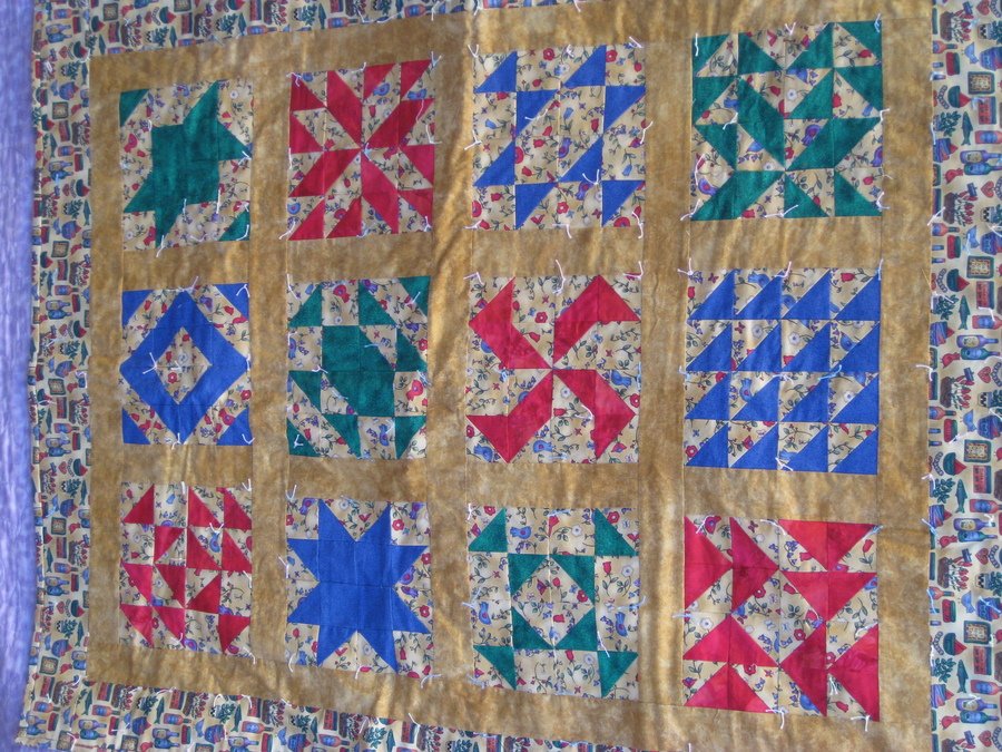 | Design Source - Description | Thangles block of the month 2 or 3 quilt -- tied |