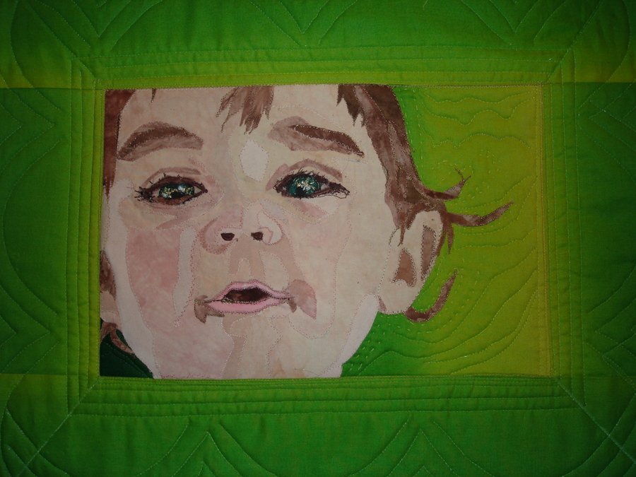 | Design Source - Description | Inspired by a picture of a friend's grandchild. Started in Marilyn Belford's QU class, "Fabric Portraits" in Sept. and finished Jan. 24th. |