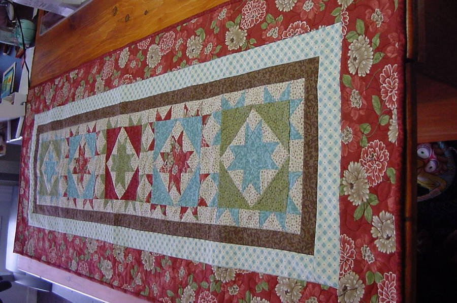 Nfiegirl Feels Like Home - This is a table runner 24 x 60 that I made as a surprise hostess gift when we visited Mass. last year. Her home is new but made to look old, with exposed beams, etc. She had a rectory table in the kitchen and when I seen this pattern with those colors, I knew it was perfect!