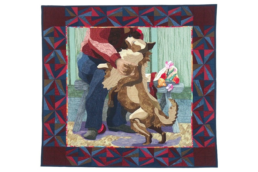 CASinnreich You're Home! - Second in a dog series, a joyous reunion is captured with energy in fabric.