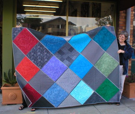 CZALON Graduation Present for Evan - I like this pattern because it was a quilt as you go project and fun to quilt in pieces. The quilt was published in Divide & Conquer, by Nancy Smith & Lynda Milligam. I selected quilting patterns for the top from Infinite Feathers Quilting Designs by Anita Shackleford.