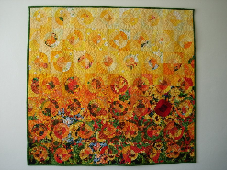 stefanka Why are they all yellow - This is a sunflower quilt which I made from all my favorite colours. It is pieced with a machine and quilted with a machine.