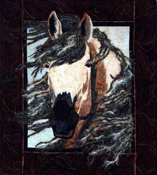 Smoky Spring Storm - There was no hesitation I would make this quilt as soon as I saw their pattern! The horse's wool mane was an experiment that was added for a more stormy effect.