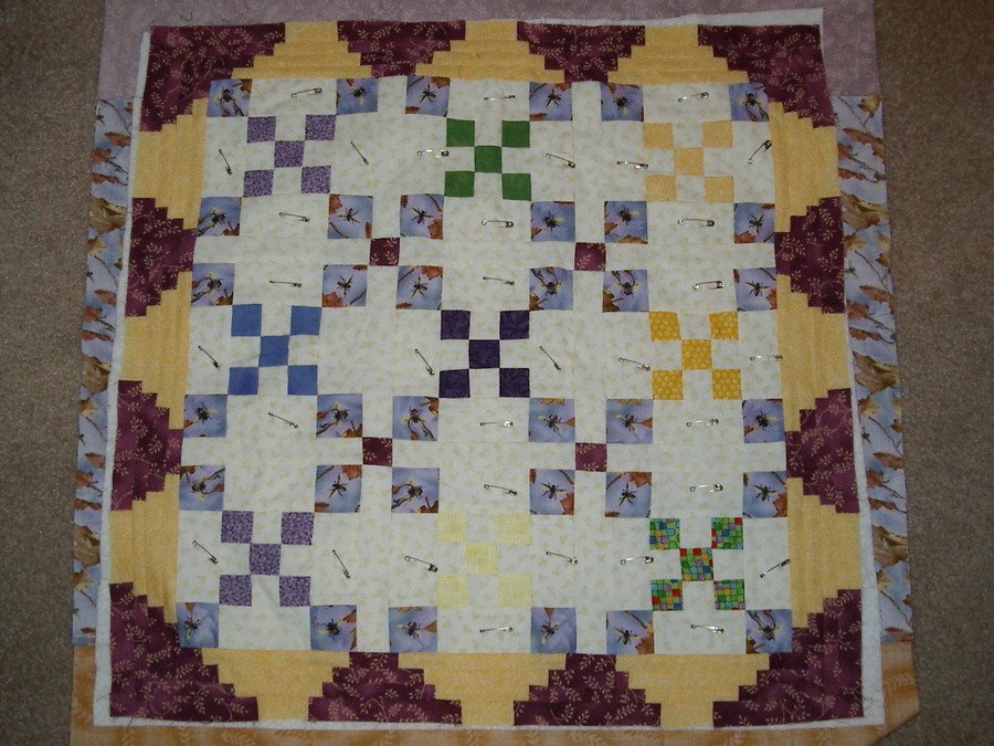 quiltwonder Queen Bee - The original pattern was paper pieced and pieced. I drafted my own smaller block size and pieced all the blocks. I machine quilted hexagons to make it look like a bee hive and free handed the queen bee on top of the "hive." My brothers called me "queenie," because they believed that my parents didn't make me work as hard as they had too and that my father let me get away with things. So I named it Queen Bee.