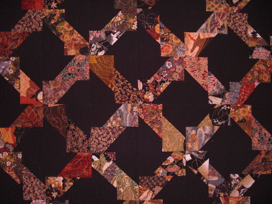 Quiltsalad Asian Fun Patch - Quilt is all made from Kona Bay Fabric with black Kona Cotton background.