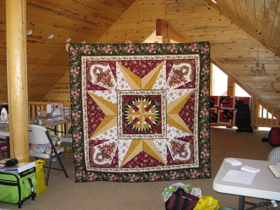 peddlecar22 A Mariner's Holiday - I designed this quilt around the Christmas tree skirt panels in the line by Benartex called Splendid Holiday. I put the panels in the corners, and designed the side blocks to compliment the mariners compass in the center. This quilt made it to a "photo finish" in the Fall 2008 Fabric Trends magazine! I sell the pattern myself through my blog, www.peddlecarquilts.blogspot.com