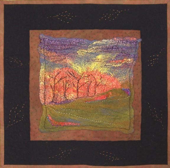 TextileTraveler Near the Grove - Center is wet-felted and machine-stitched. Quilt is hand-quilted.