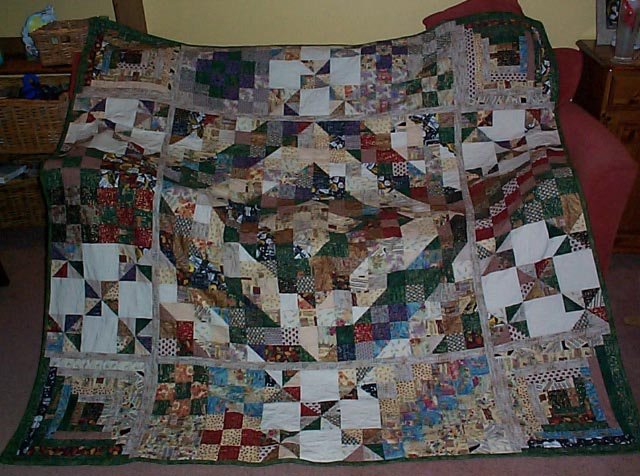| Design Source - Description | A wedding gift for two friends. They are both musicians and so the quitl contains 13 musical fabircs - which took some finding! |