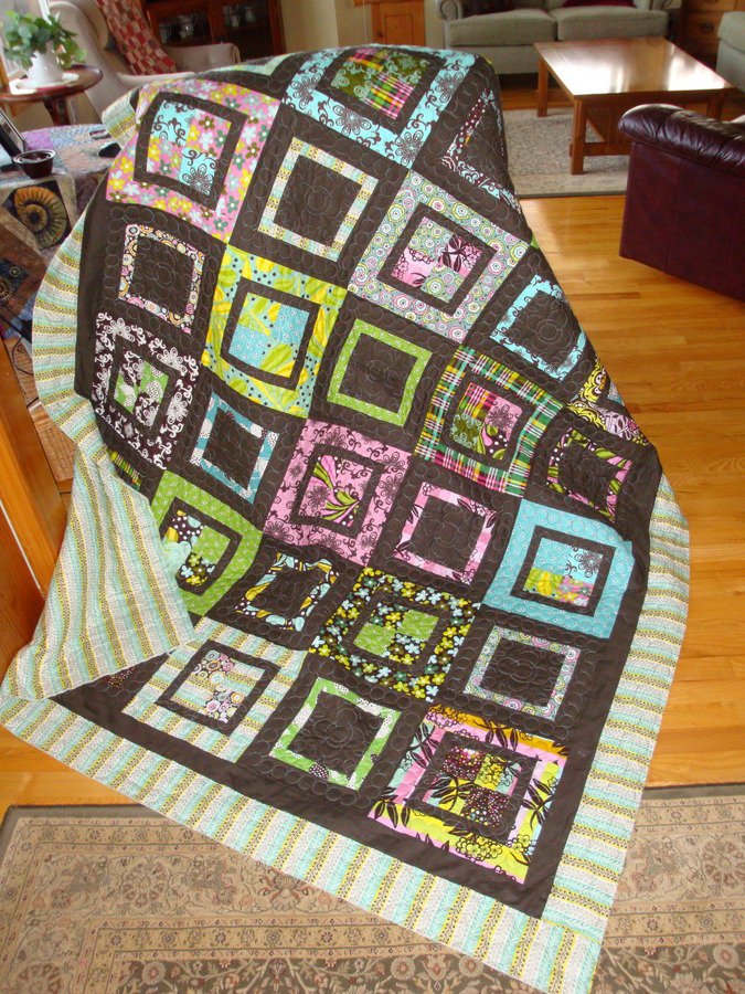 Quiltsalad Square Lollies - From a fabric group called Chocolate Lollipops hence the name "Square Lollies" , just played around with the fabric till I found a block I liked.