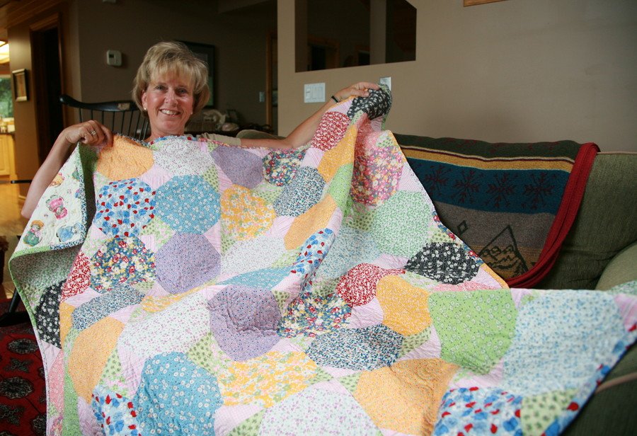 libbyduncan katies surprise - I made this quilt in one week as a surprise for my daughters birthday. I had asked her what she wanted for her birthday and she of course said a quilt. I need to learn to ask earlier than one week before hand. I made it at my cottage in the summer and do a lot of sewing there on my screened in porch looking out over the lake. Always feel like th luckiest person in the world when I am sewing there.