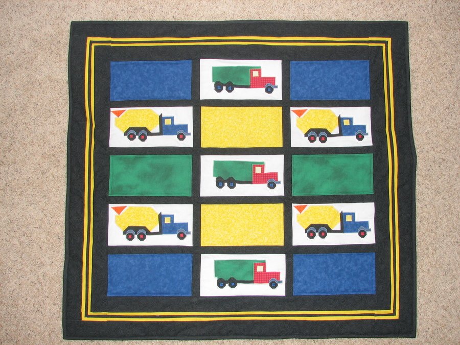 | Design Source - Description | Cement and dump truck applique with pieced road boarders. |