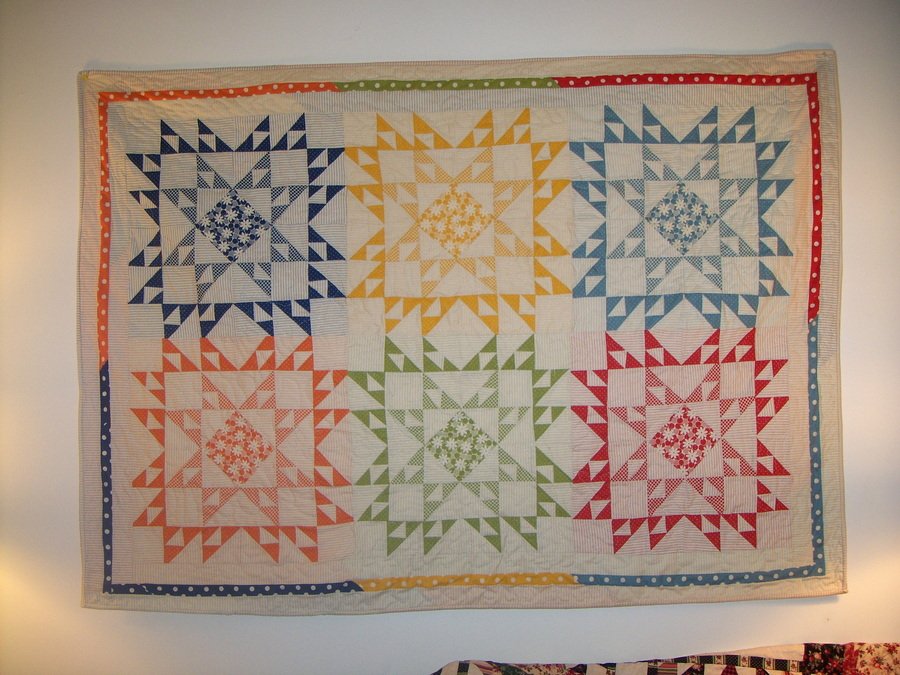 tiaabeja Double Dutch - Pieced stars with in stars. Machine pieced and machine quilted with a meandering design throughout the quilt and alond the outside border.