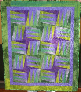 Lauraquilt Ripless Paper Piecing - Thsi quilt was constructed in an online class at Quilt University called "Ripless Paper Piecing." We used freezer paper templates and did not sew through the paper. I used 3 or 4 freezer paper templates to construct my 20 blocks. All of the facbric is from my stash and most of it was either painted or dyed by myself. I quilted this myself using my HandiQuilter 16.