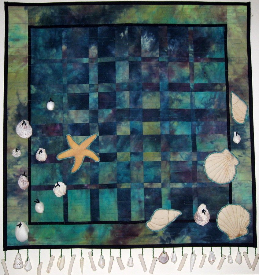 quilt603 Beachcomber - My 2nd Harmonic Convergence Quilt. A reminder of holidays spent in the Maldives. Used Hand Dyed fabric & shells & coral gathered on the beach.