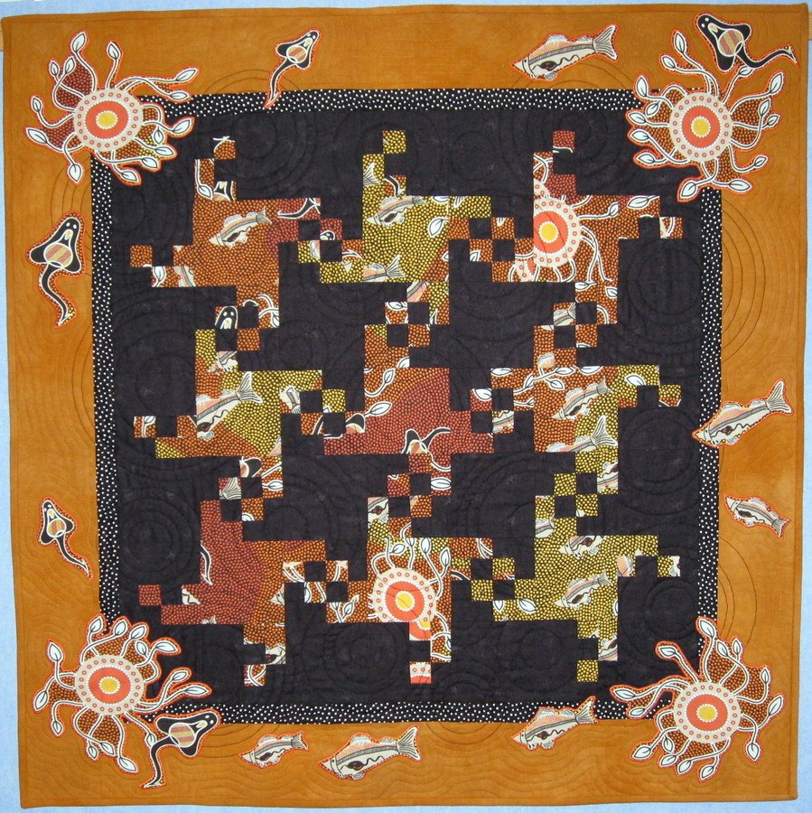 quilt603 Dreamtime Spirits - Quilt started in a workshop run by my local quilt group given by Christine Porter based on her 'Porters Puzzle' Block from her book Tessellation Quilts.