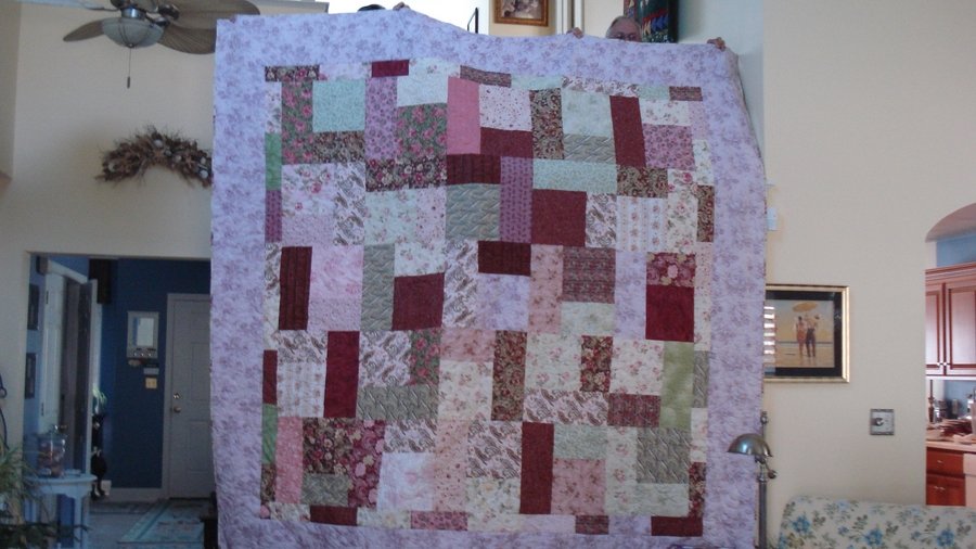 | Design Source - Description | Turning Twenty pattern was for my daughter Lisa. She wanted a summer quilt that was done in the colors of her bedroom. A mixture of rose and green colors. |