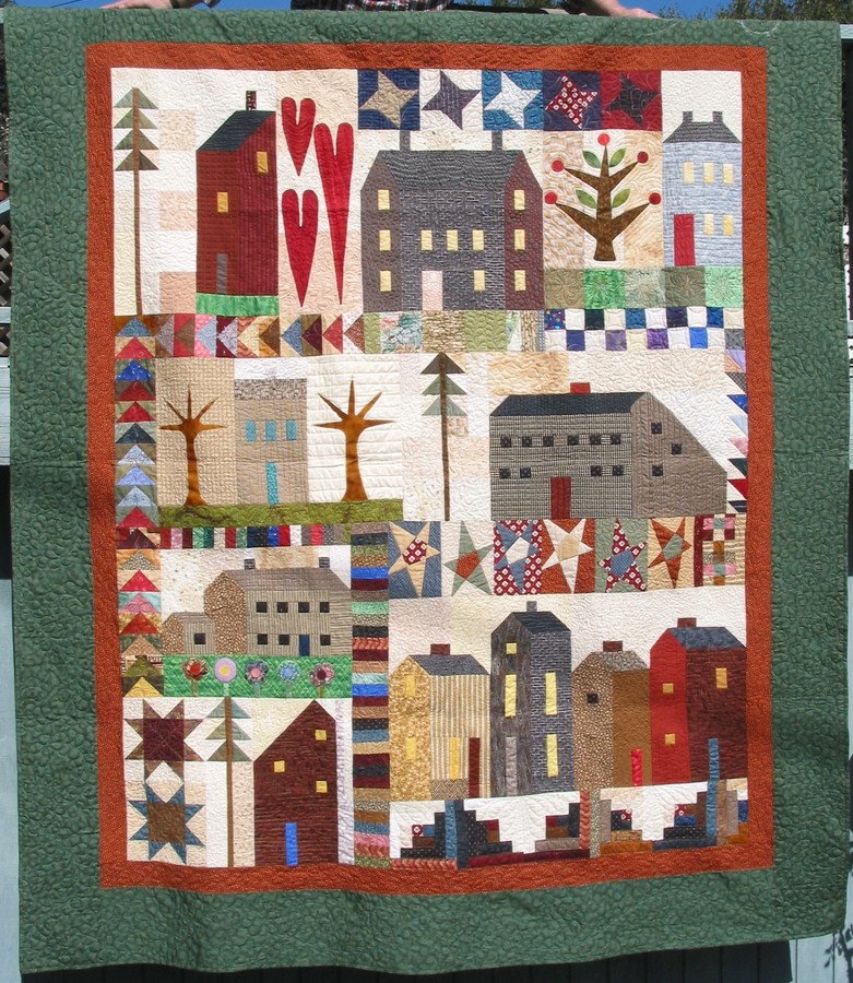 latpatt Houses - My guild Upper Canada Quilts is doing this quilt as a group project. I loved doing the differnt blocks with house fabrics. Machine quilted on my Juki machine, trying new designs and ideas for practice.