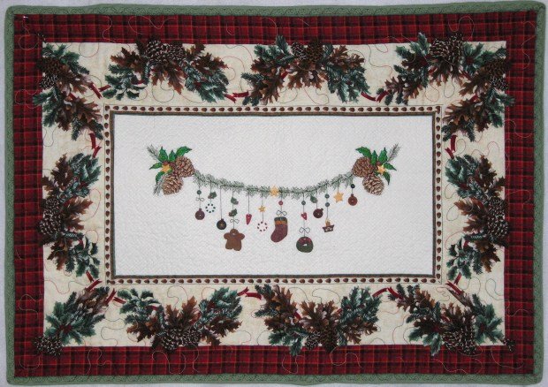 momof2 Buttons and Boughs - This was an Artista club project to teach us how to re-hoop. The buttons are from the Just Another Button Company, and are extremely adorable. The fabric for the border was in my stash, and matched perfectly.