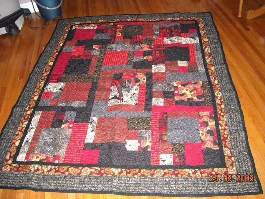 Heather75 Small Crimson beauty - This is a smaller version of a crimson and black turning twenty again that I made for myself. My sister-in-law liked it so much that she asked me to make one for her. I didn't have enough of any one fabric to do a six inch border so I made three separate borders. It turned out pretty good.