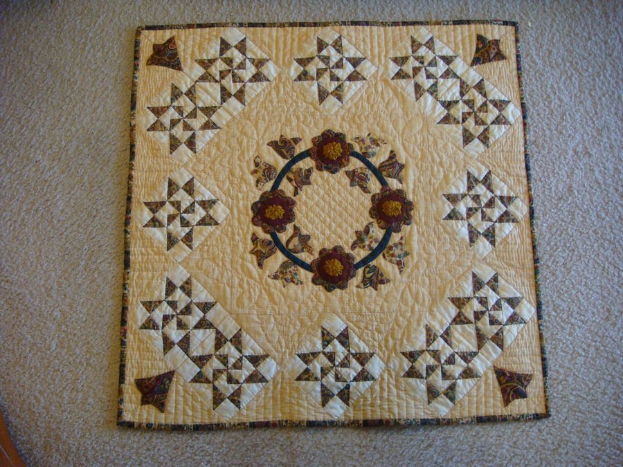 momratz Salute to Martha Washington - This was made for a Women's History month display during our 2009 quilt show. The quilt is a Martha Washington wreath surrounded by Martha Washington pieced blocks. Martha was a seamstress and famous for her coverlets usually in a medalion style.