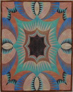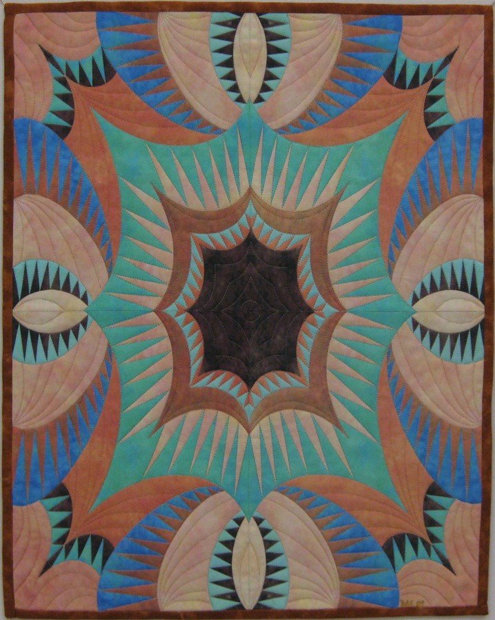 bettyannseeman "Sedona Starburst" - This quilt and the on below will be auctioned March 13 14 at Friendship Knot Quilters Guild Show. It Was designed in Corel Draw starting with Ricky's Rhapsody design techniques. I then put a Betty Spin on it. I added piecing and then painted and printed it in my home printer