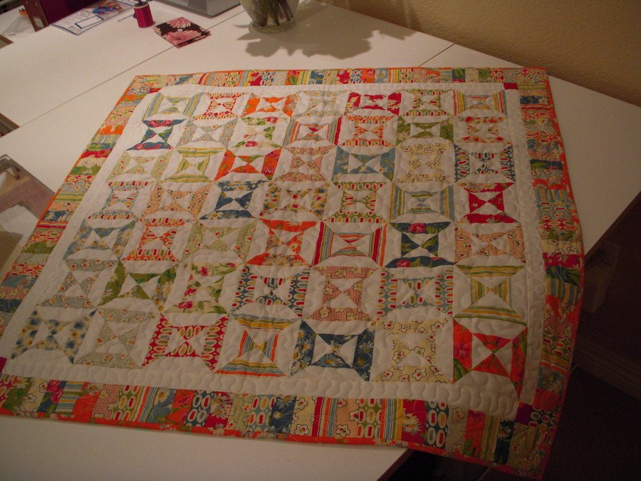 MAquilts Short Story - A charm pack UFO for the past 18 months. I am making a concerted effort to finish those projects. I had fun experimenting with a leaf and vine border. LOVE IT!!! American Jane Peas and Carrots