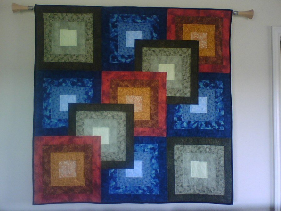 | Design Source - Description | I love the 3-D feel to this pattern. I machine quilted the squares 1/4" inside the edge all around. Will make another one changing it with bright colors and maybe a border. It was fun to make. |