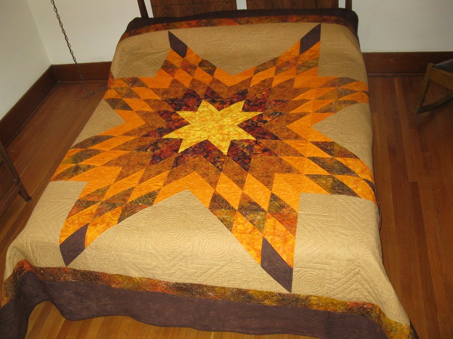 | Design Source - Description | Materials and quilting were selected by my daughter. She is a massage therapist who has her own thoughts about energy, balance, and life. She feels this quilt represents her uniqueness and individuality and she loves it! |