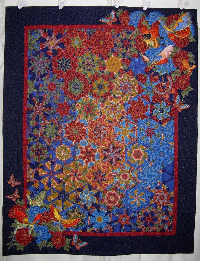 | Design Source - Description | The hexagons were cut from a single large patterned Asian fabric. I designed the applique' butterflies which are made in dupioni silk, painted, embellished with crystals and machine applique'd. |