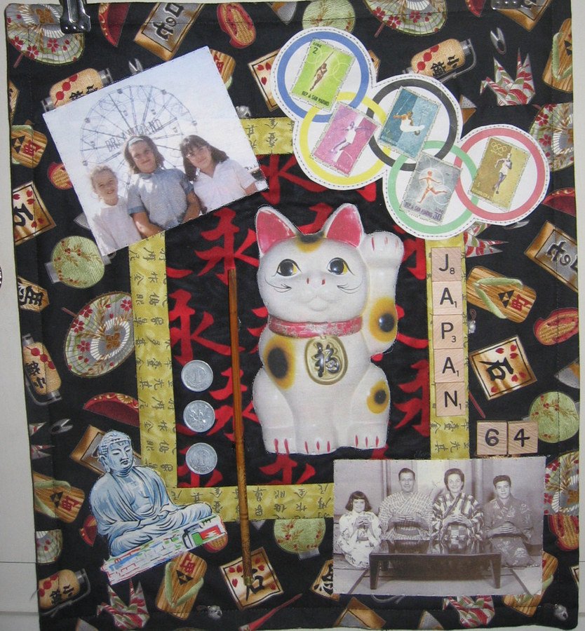 sewmary Japan 64 - As a scrapbooker & quilter, I wanted to combine both crafts. Being raised US Navy, I had the privilege of seeing the world. Memories of Japan in 1964-1965 include the Tokyo Olympics, Daibutsu Buddha of Kamakura, & Yokohama's Dreamland.