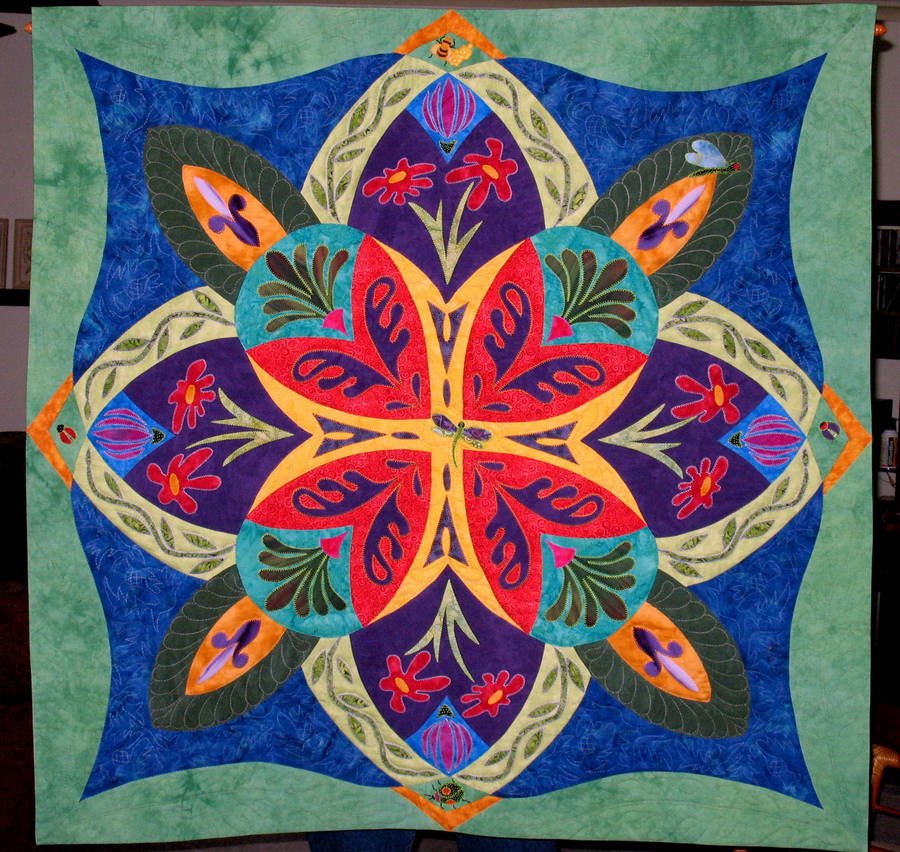 marbles Rhapsody in the Garden - I just couldn't wait any longer for the classes to resume on The Quilt Show, so I bought Ricky's book and finally finished my quilt. Some of the bugs in this Rhapsody Garden are from Suzanne Marshall's book, "Take Away Applique". This was a fun process, from designing the "skeleton" to finally sewing it all together.