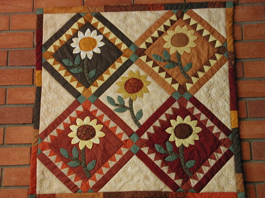 | Design Source - Description | I used the approximate shape of the sunflowers on the purchased lap quilt. Then I just did my own thing and came up with a design for a wall hanging. |