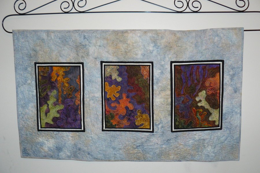 kerry6215 Underwater Dreaming - This is my first attempt at designing an art form quilt it is quilts on a quilt.Made of Batiks for the mini quilts.Free motion quilting in various threads