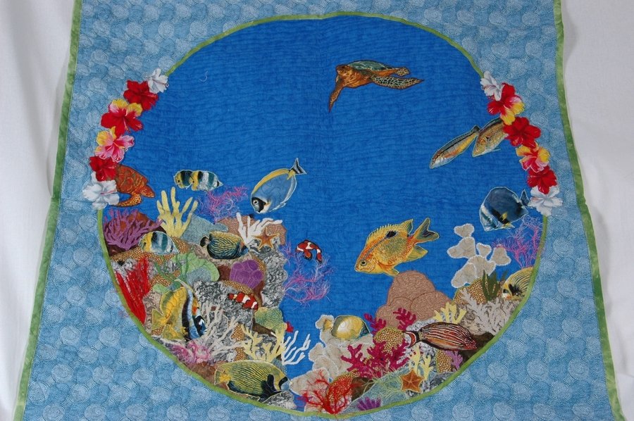 arlijohn Max's Vista Del Mar - I made this baby quilt for Max's mother because we share a love of the sea and snorkeling. We both love the magic of being underwater, watching the sea bursting with life and color. Also, we both resent being landlocked and so faraway from the sea. I have known Max's mother since she was an infant so it was a double pleasure.