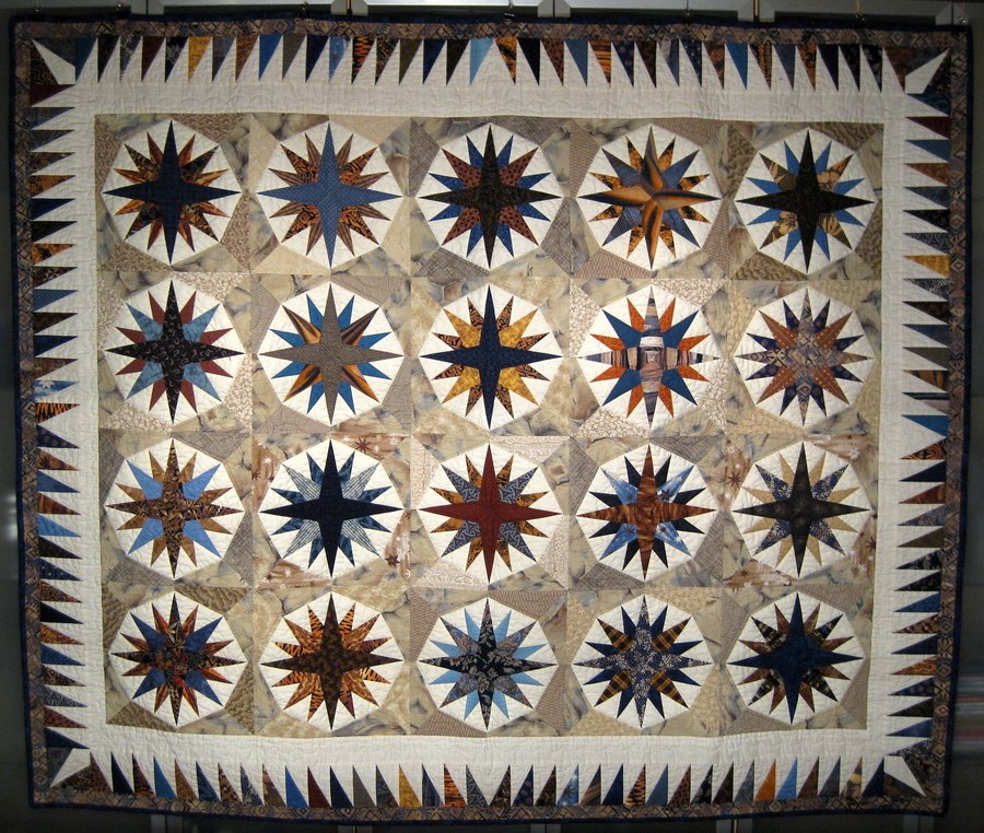 | Design Source - Description | When I made this quilt, I was scared of curved piecing and I didn't applique. I had to come up with a no-curved-seams Mariner's Compass block. |