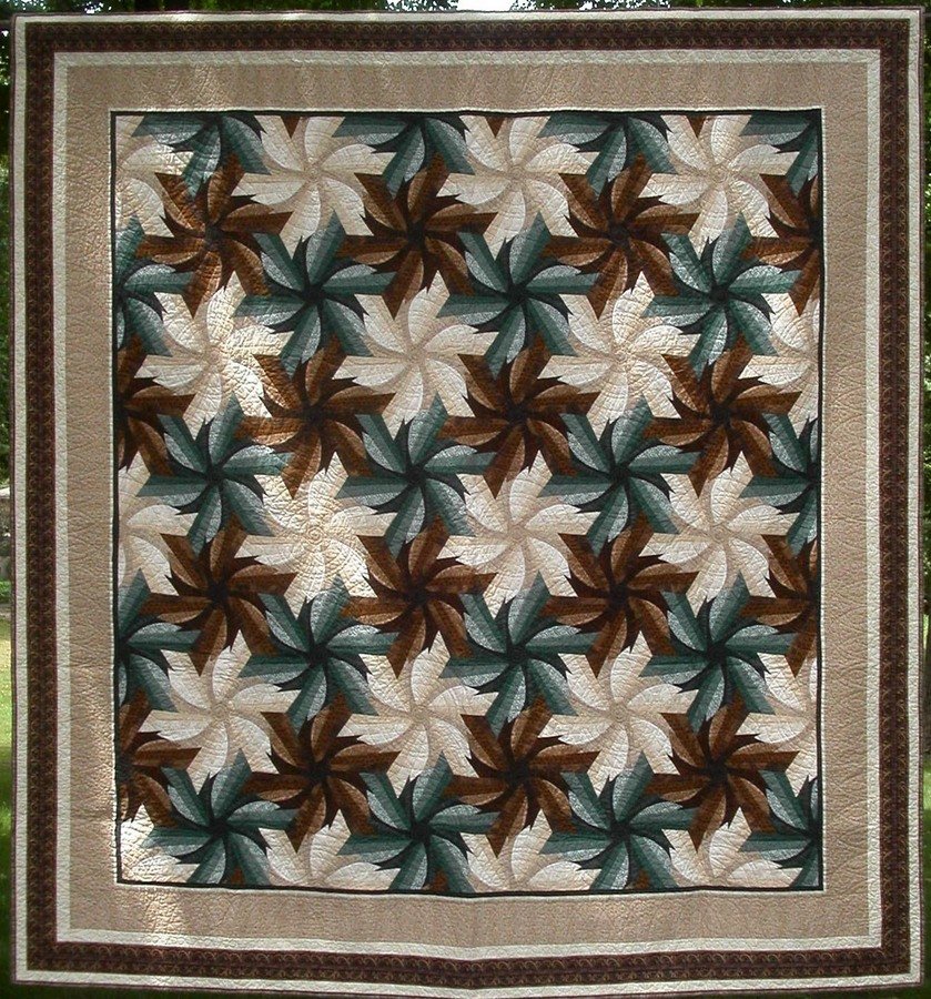 mittelmr Daylilies - Made as a wedding gift for my daughter, she chose the brown, ecru, and green colors for this tesselation design known as Daylilies by Jinny Beyer. Except for the borders, it is entirely hand pieced and hand quilted(in my original design).