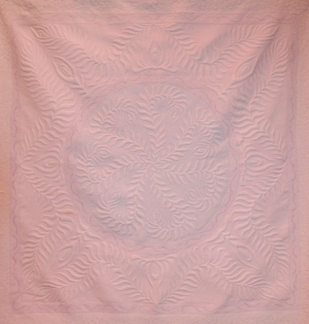 | Design Source - Description | I hoped this quilt might appeal to quilt judges more than my black wholecloths. It's not as me, but it was an interesting project. This is the quilt that broke my cheek bone! |