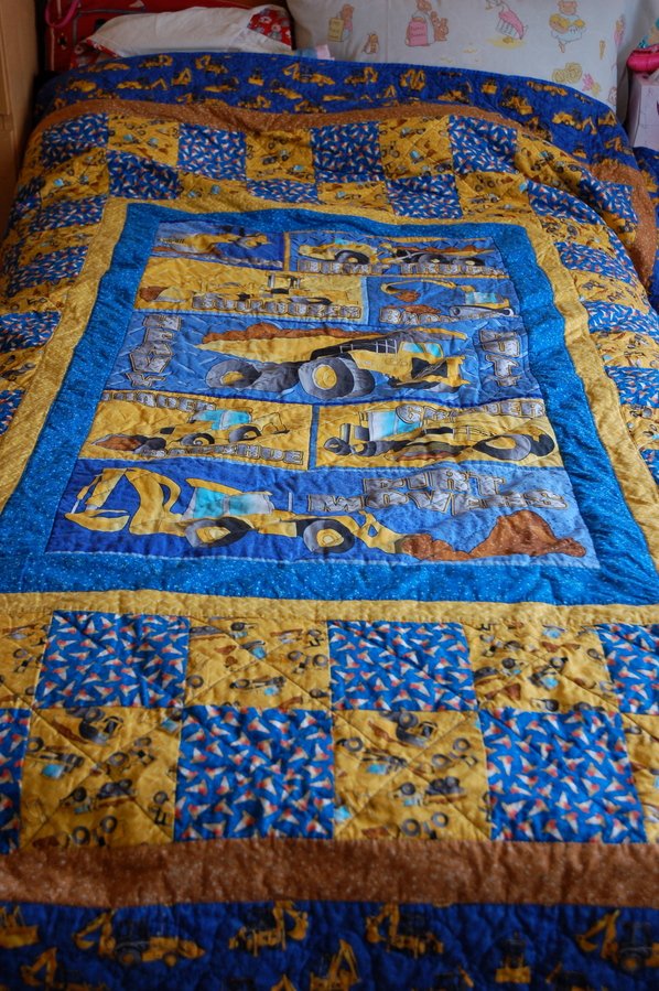 | Design Source - Description | I adapted the published pattern to make it a little easier, since it was only my second quilt. I made it for my nephew who is obsessed with construction vehicles. |