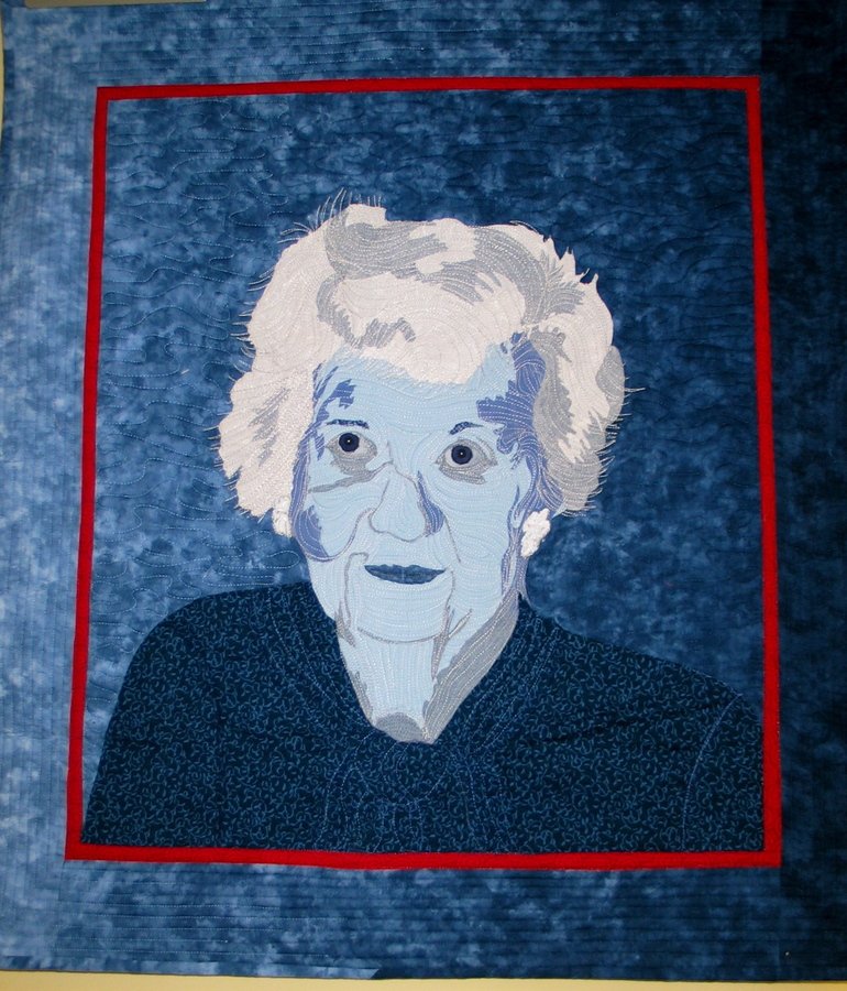 threadhead01 Alice From the Palace - Translated from a photo of my Mother. Living with Dementia the last years of her life, she insisted everything around her be the color of blue. I took a class from Pam Holland who helped me tremendously in selecting fabrics and designing the image.