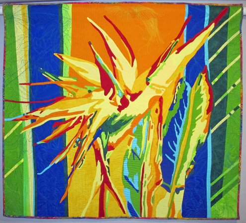 PatHobbs Garden at the Wall - The idea was to put garden flora and fauna up against the stones of a wall. The stones are like some I have seen on buildings in Nova Scotia. The appliqued flowers and animals reside in my garden. The quilt was pieced together block by block.