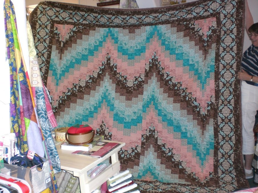 LufftoCraft M is for Marraige - My Sister's Wedding Quilt. McKenna was her Maiden name and Matera is her Married name. Two M's so I designed a bargello quilt to show the joining of the two into one. Then had it quilted by a wonderfull Local Long Armer with sisters hearts so it would always remind her of me.