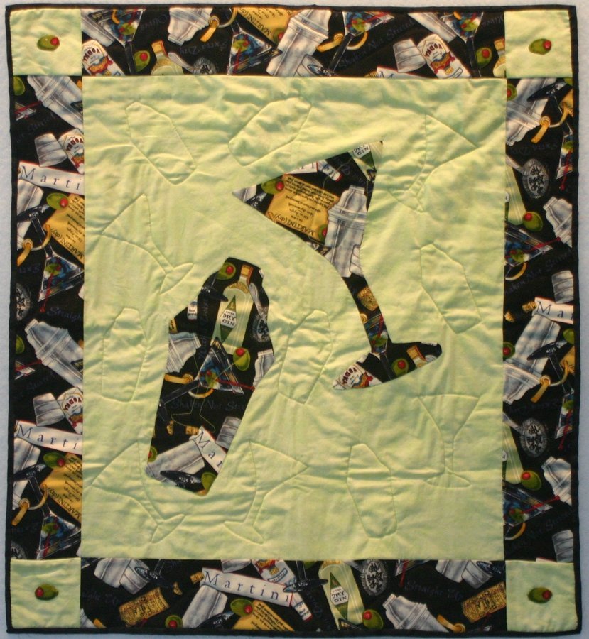 | Design Source - Description | My dad has a martini every night so I knew this fabric was for him. I enlarged the shaker and glass patterns from the fabric and appliquéd them on then used them for quilting. |