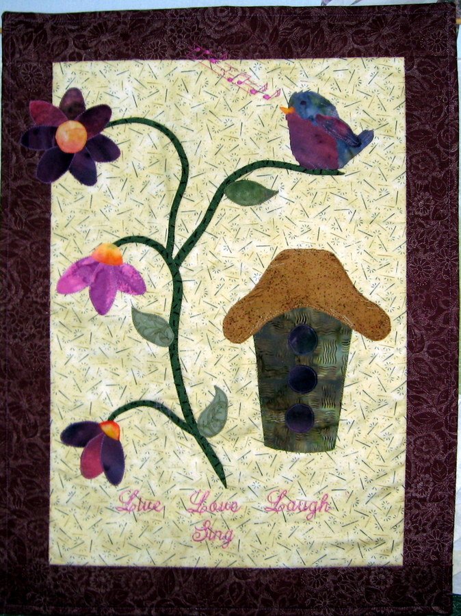 | Design Source - Description | Quilt made as a door prize for a Quilt Christmas luncheon. Used scraps. This was so fun to make, fusable applique and machine embrodiery |