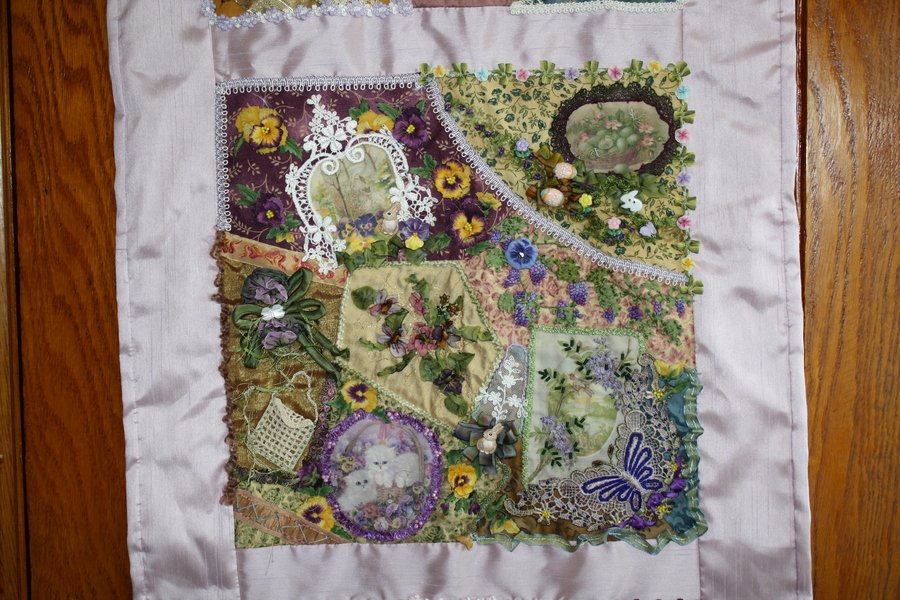 | Design Source - Description | The back ground is machine sewen. All the extras are done by hand, with lots of embellishments. The sashing, border, binding was also add on by machine. |