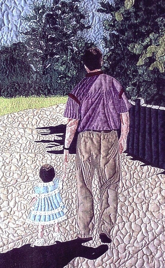 19501950 First Steps - Raw-edge appliqued. Background fabric was fuzzy cut and freemotion quilted