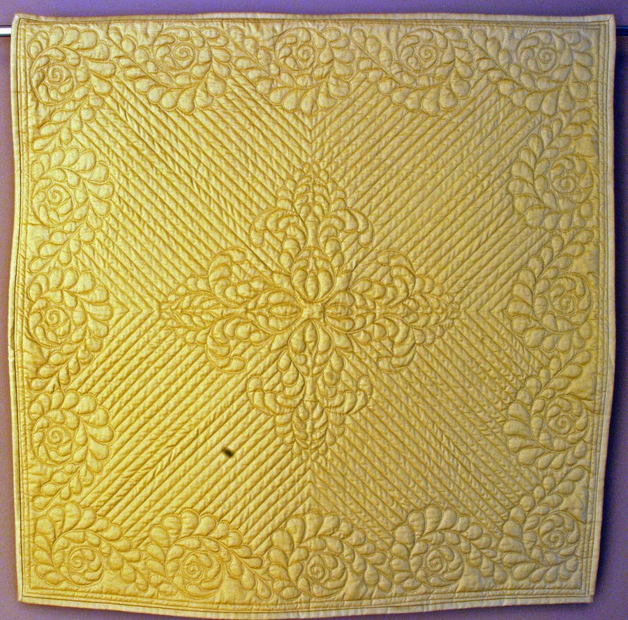 amybharry Snail's Crawl - This was my first attempt at a wholecloth quilt. I marked the design with wash-out blue marking pens, then off I went. I used Cotton Sateen fabric and YLI #100 silk thread. My biggest challenge was getting the border to fit together. That's still my biggest challenge.