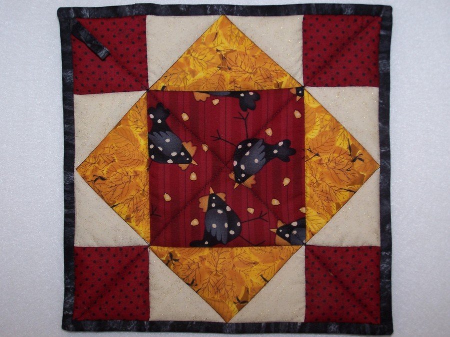mauimama Krista's Kitchen - These are Hot Pads made for my niece as a housewarming gift. They measure 10 1/5" square and match the colors in her new kitchen. She has Cherry wood cabinets and black marble & travertine tile backsplash. Her kitchen is very rich looking. I made these as a quick last minute gift.