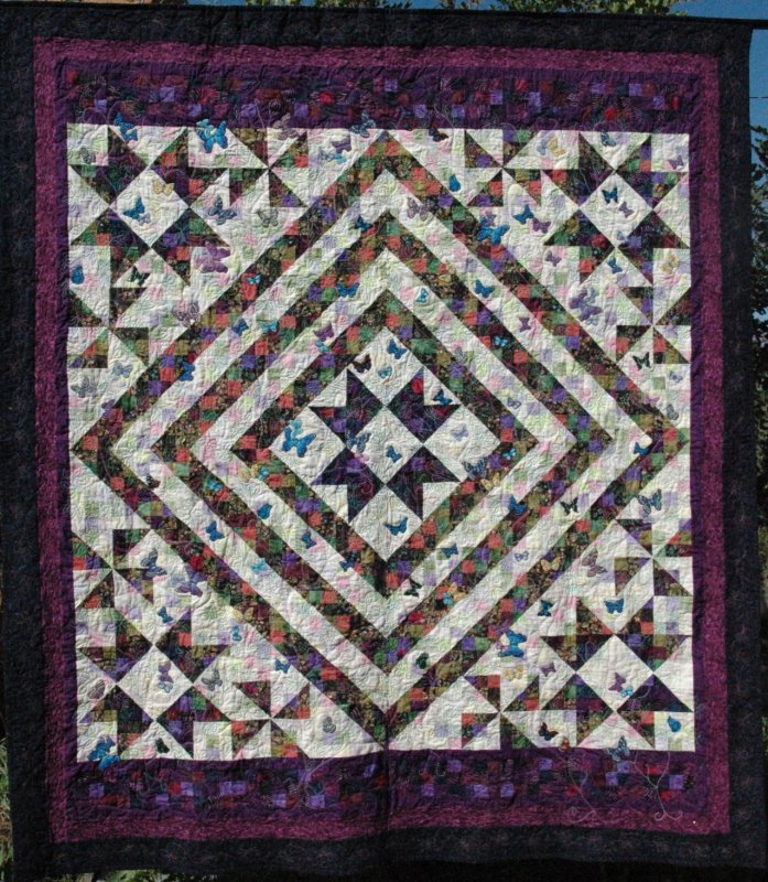 | Design Source - Description | Butterflies were machine appliqued to pieced background to simulate walking through clouds of butterflies in summer fields and thickets. I've done this in nature with large masses of "puddling" butterflies. |