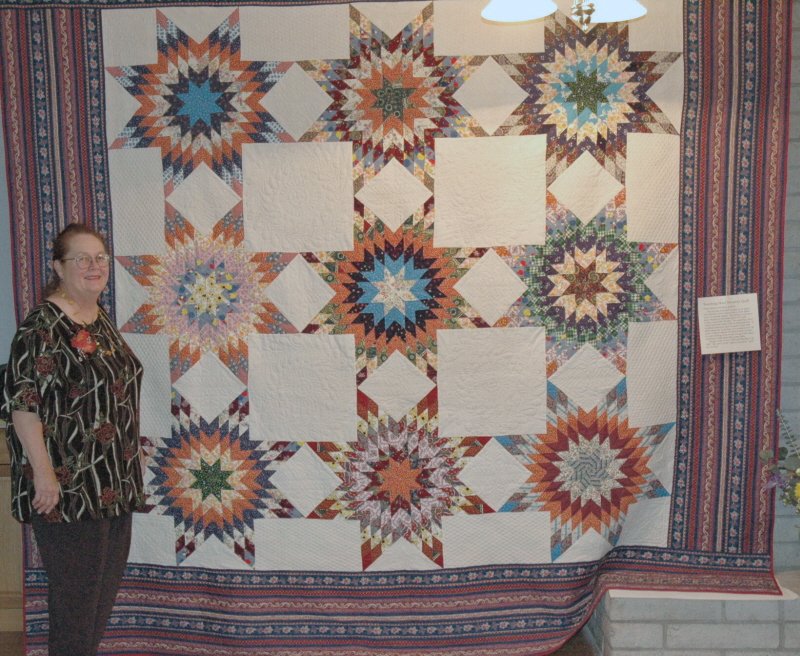 carolinqv Touching Stars Memory Quilt - Contains fabrics from scrapbags of my maternal grandmother, mother, myself and my daughter. Inspired by a photo in a book on historic quilts of America.