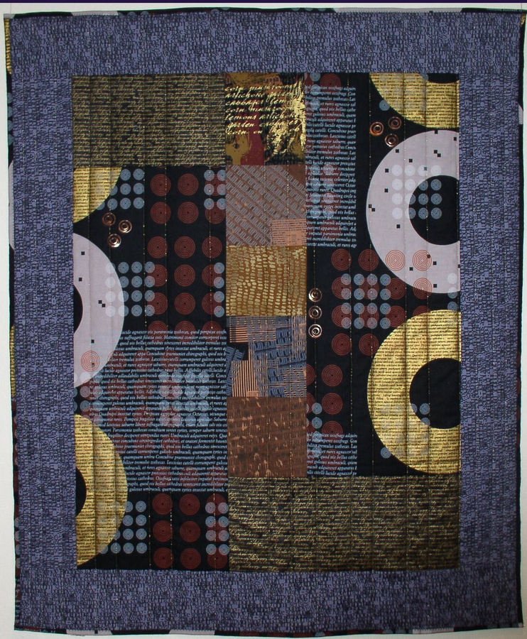 sstephen Lonni Rossi - I love the graphic nature of Lonni Rossi's fabrics, and when I saw an article in Love of Quilting in which Rossi showed how to use panels of her fabric to make a wall hanging, I had to use some of my collection of her fabrics, mostly from the Typospheres collection.